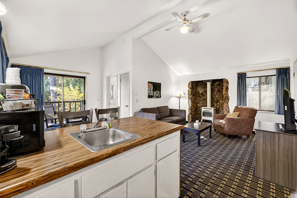 Our miner’s cabins are individual free-standing units with plenty of space to enjoy nature. There is a queen-size bed in a separate room and most cabins have a pull-out sofa sleeper in the living room where you will have an arm chair and fireplace for you to get cozy. The cabins also have a kitchenette with a 2 burner cook top and a small dining area. The Cabins have all the modern amenities such as cable TV, Wi-Fi, Coffee Maker, Microwave, Mini Refrigerator, Heat & Air Conditioning, Iron & Ironing Board, Private bathroom with walk in shower, Back Deck overlooking the forest, Front Porch with BBQ and FREE parking. The Cabins can accommodate up to 4 people *with sofa sleeper and 2 pets*for an additional pet fee. If you enjoy a rustic retreat, this is for you! Be sure to bring cooking utensils, dishes and silverware, this is a modern Pack it in / Pack it out adventure.