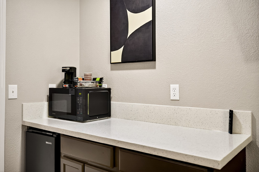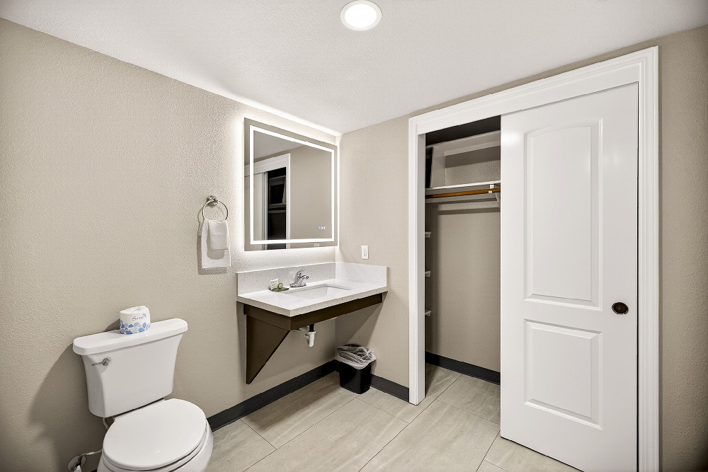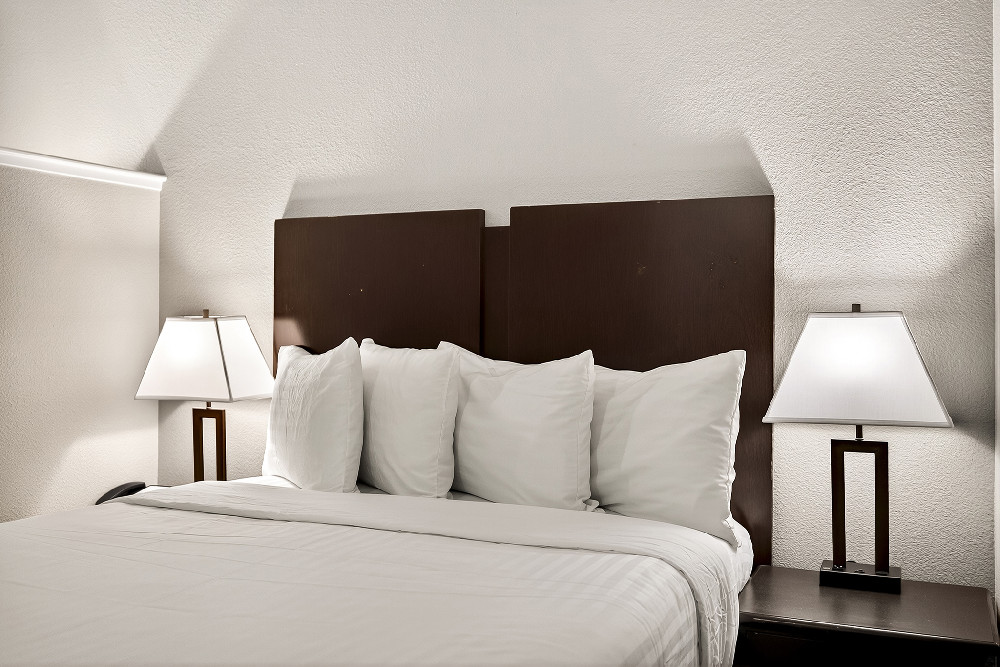 This Northern Queen Inn 400 sq ft deluxe room comes with a comfortable queen bed with coffee maker and mini fridge. Double occupancy. Free WiFi, and some rooms are pet friendly.