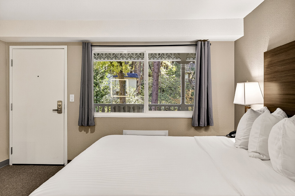 Come enjoy our spacious and comfortable queen room. This room includes an armchair and ottoman to ensure relaxation, whether you are curling up with a good book, watching a favorite show, or enjoying the company of your traveling companions. These rooms have all the modern amenities such as Cable TV, Wi-Fi, Coffee Maker, Microwave, Mini Refrigerator, Heat & Air Conditioning, Iron & Ironing Board and FREE parking. The private bathroom has a tub-shower combination with complimentary toiletries and is separate from the vanity. This room type can accommodate up to 2 people and up to 2 pets*for an additional pet fee. ALL rooms are non-smoking and steps from hiking trails and outdoor adventures. Come book your stay today.